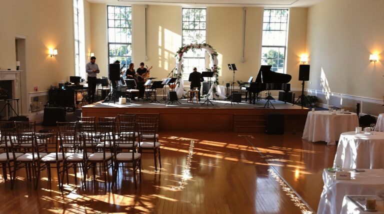 Guest arrival music sets the tone for your celebration, typically starting 30-45 minutes before the ceremony. Your musicians or DJ should arrive 90 minutes early for setup and sound checks.